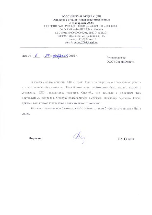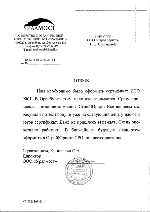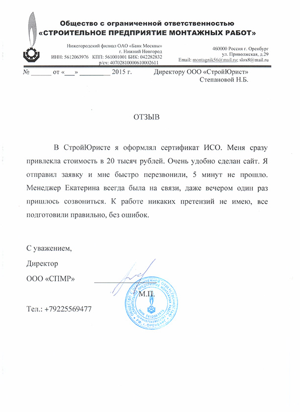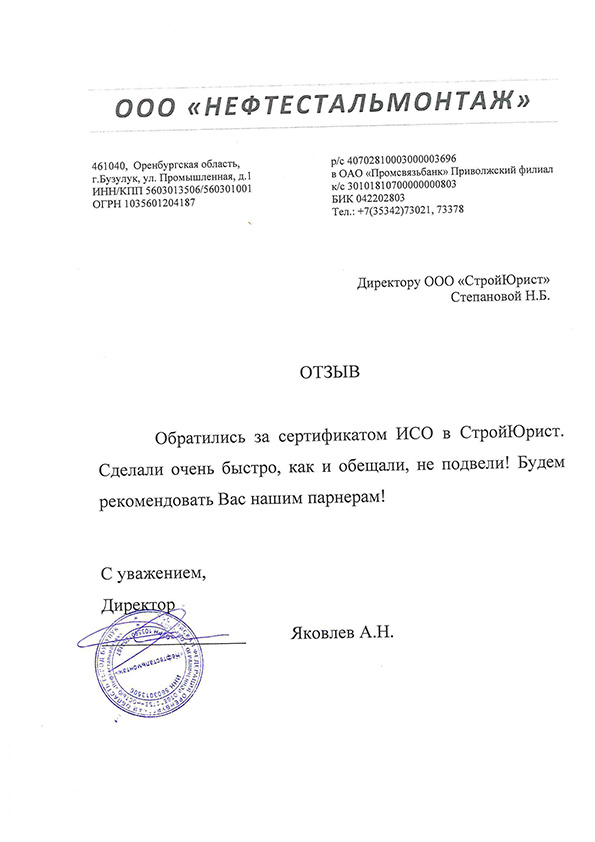 Отзывы клиентов "СтройЮрист" по ISO в Астрахани