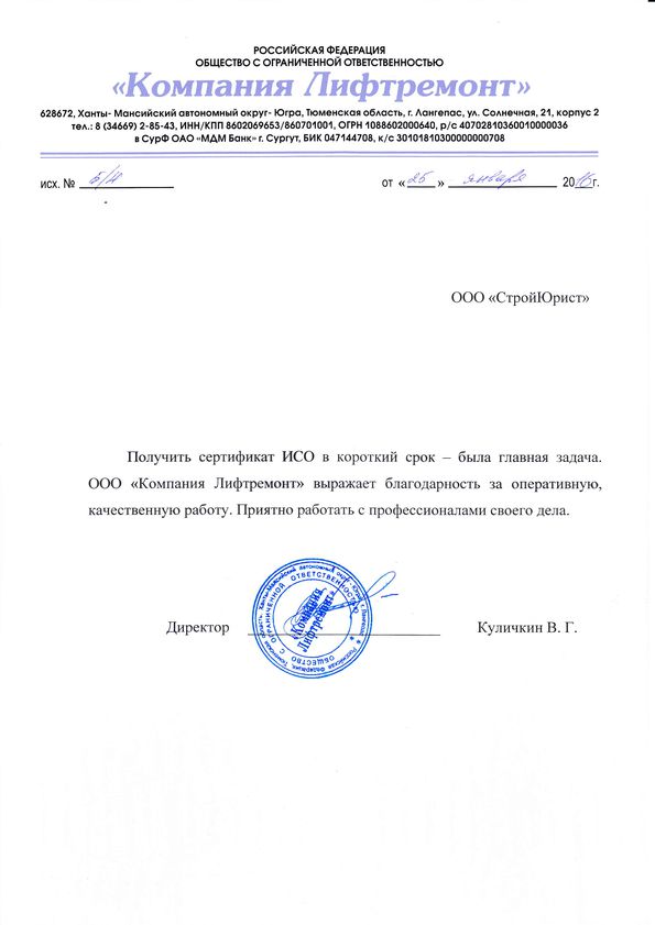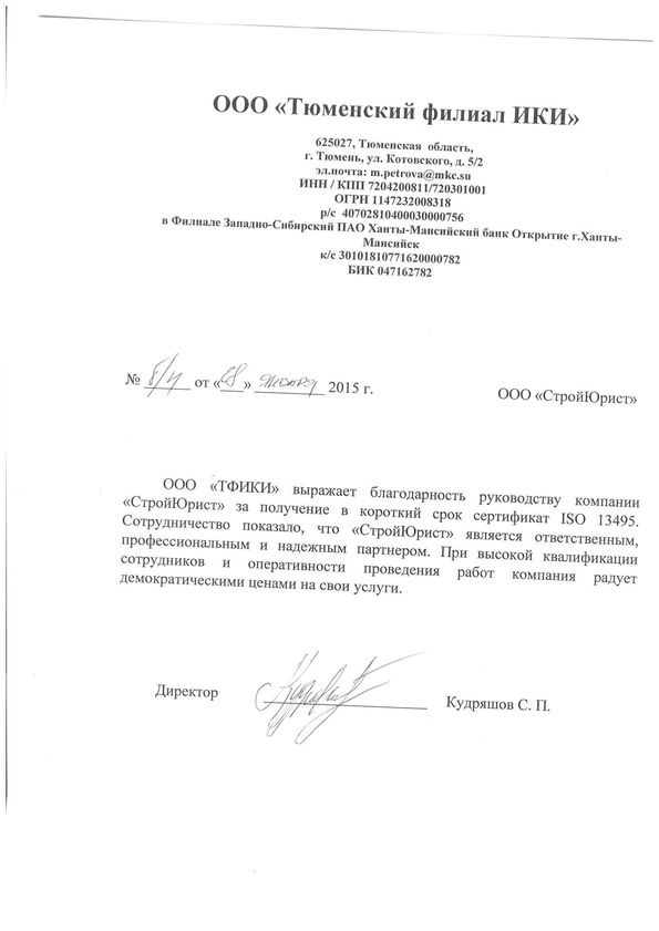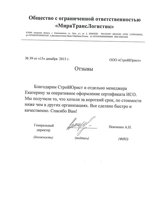 Отзывы клиентов "СтройЮрист" по ISO в Астрахани