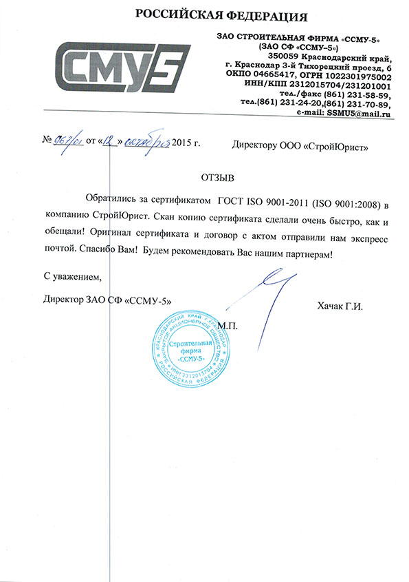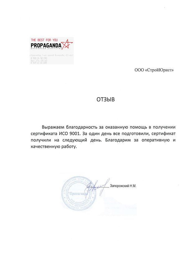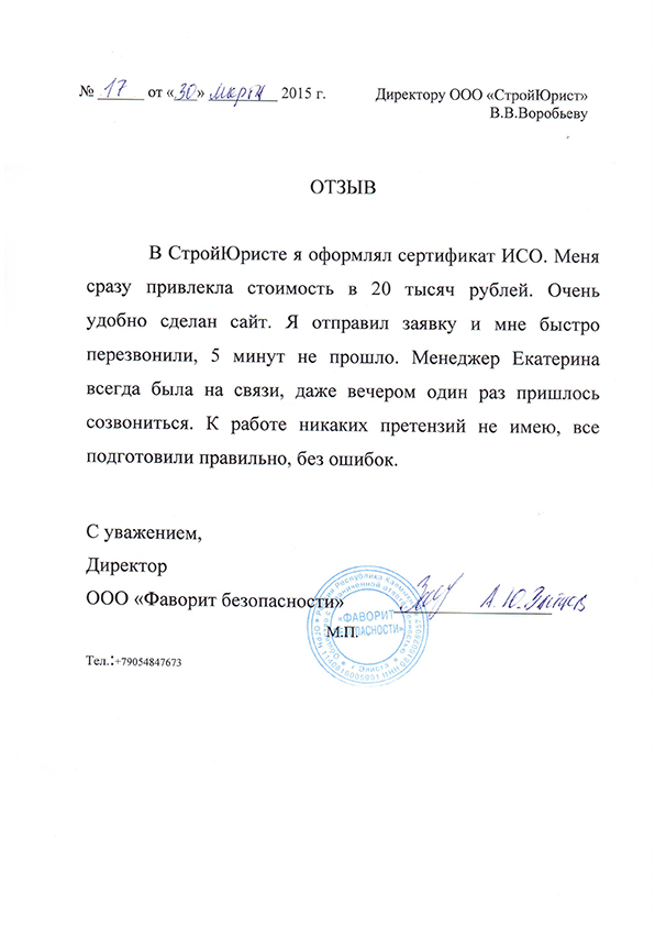 Отзывы клиентов "СтройЮрист" по ISO в Астрахани