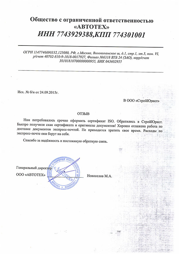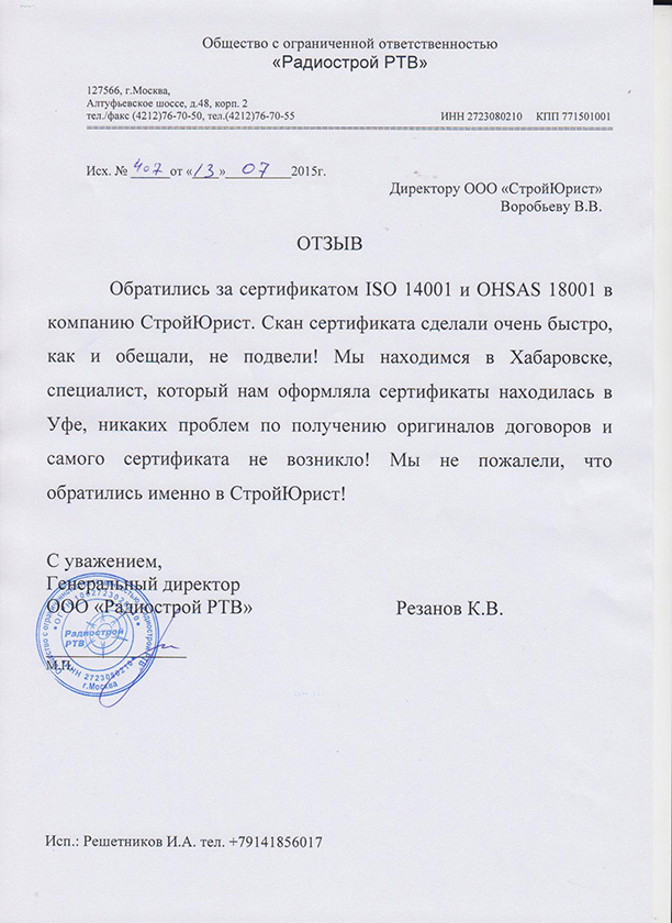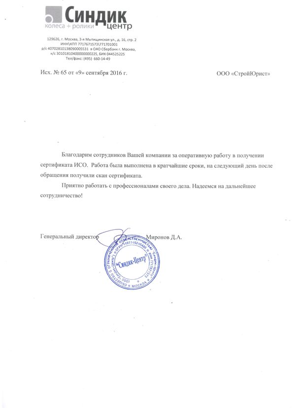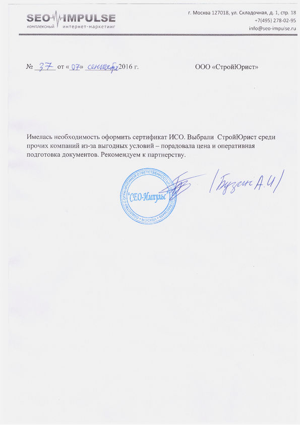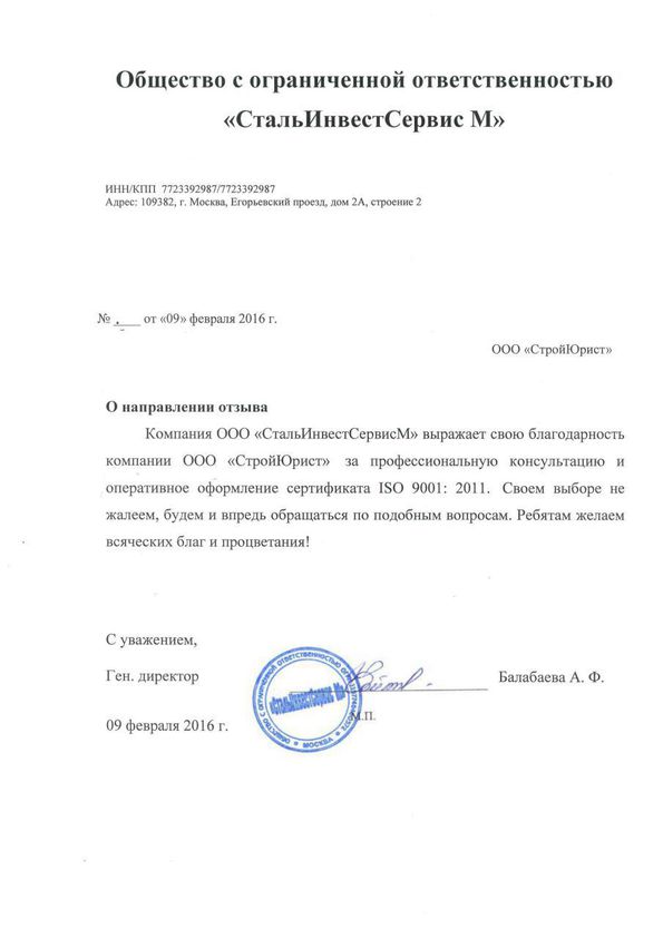 Отзывы клиентов "СтройЮрист" по ISO в Астрахани