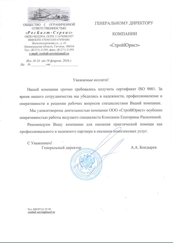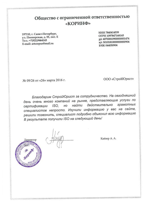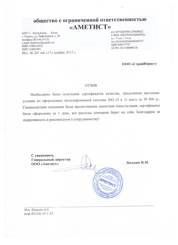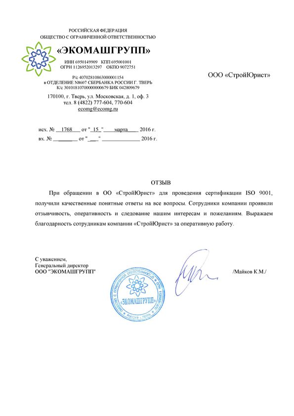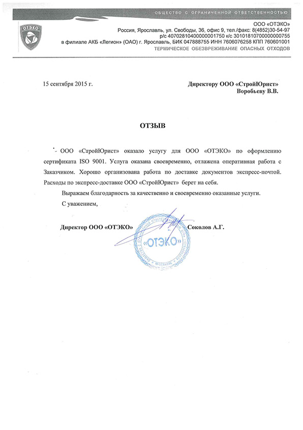 Отзывы клиентов "СтройЮрист" по ISO в Астрахани