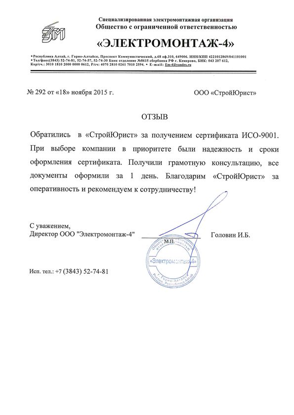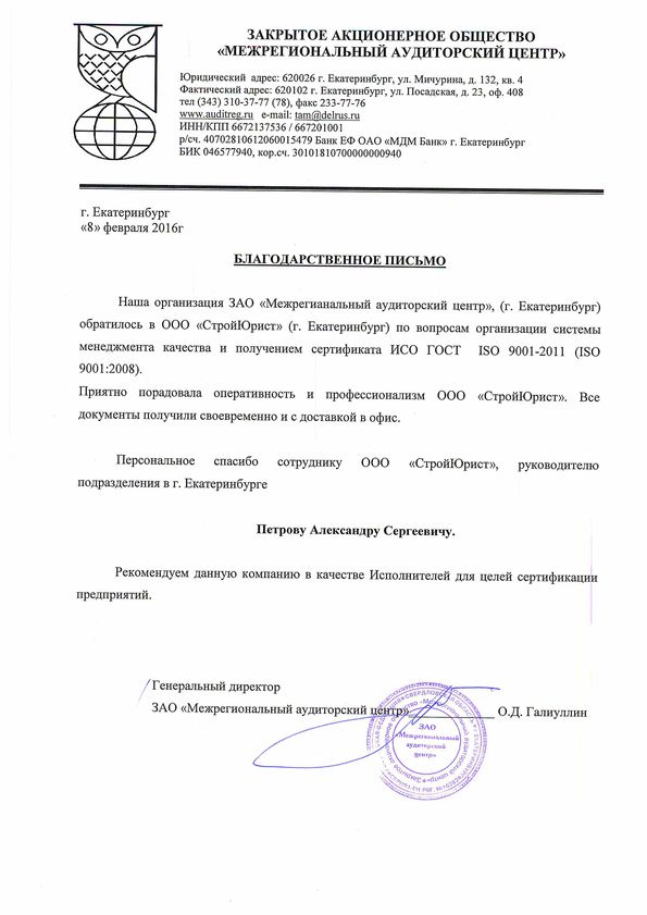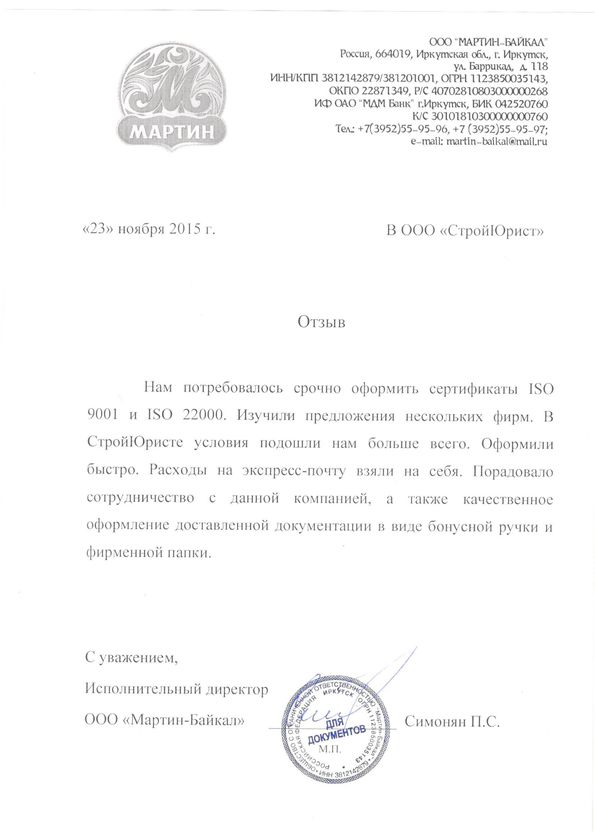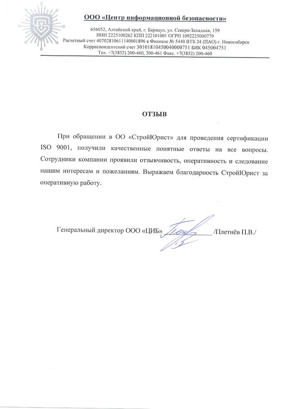 Отзывы клиентов "СтройЮрист" по ISO в Астрахани