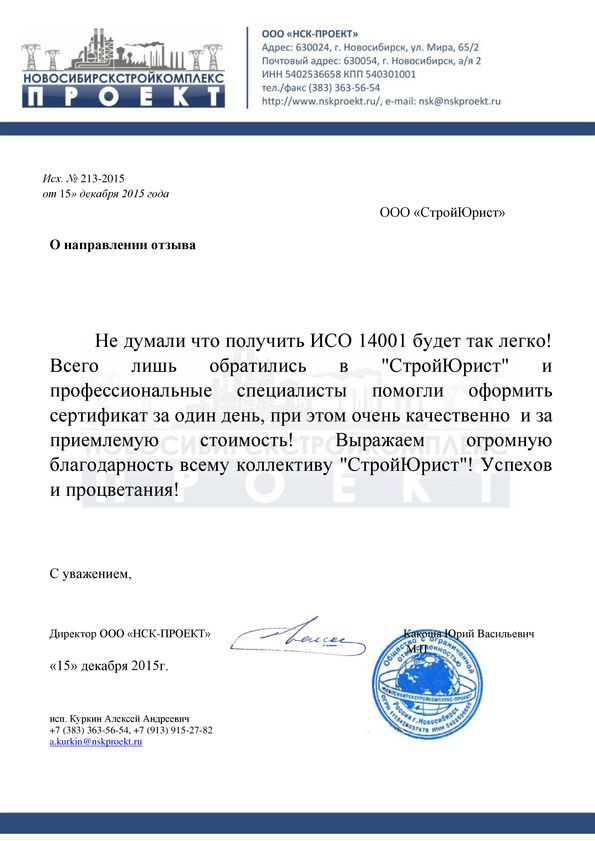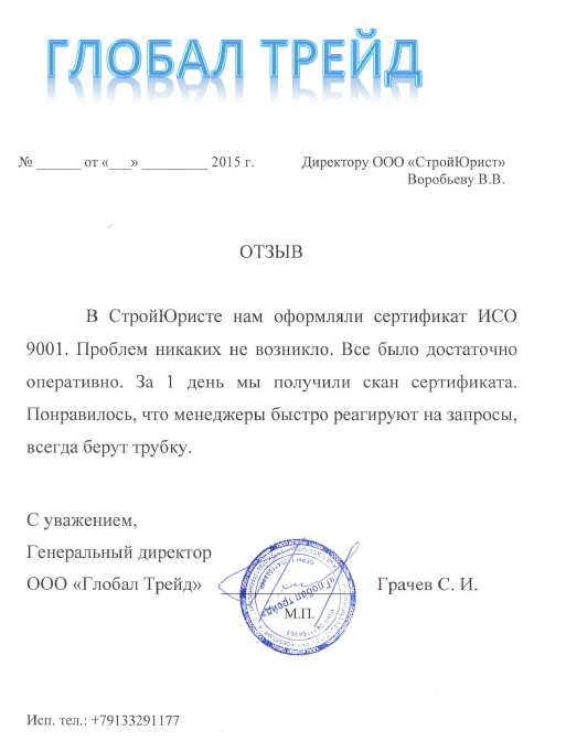 Отзывы клиентов "СтройЮрист" по ISO в Астрахани