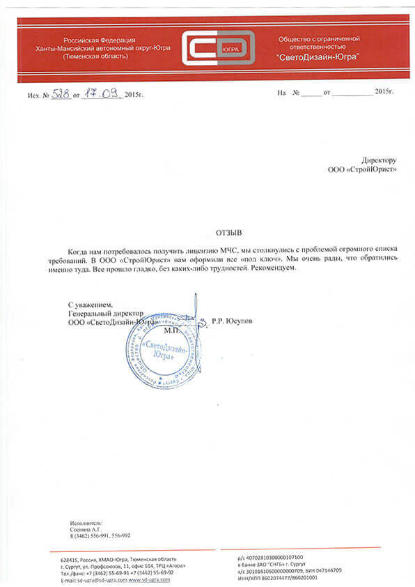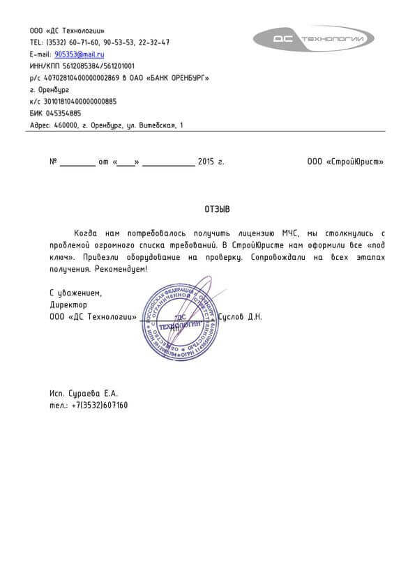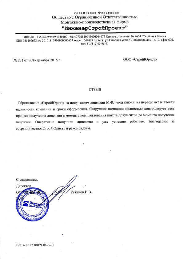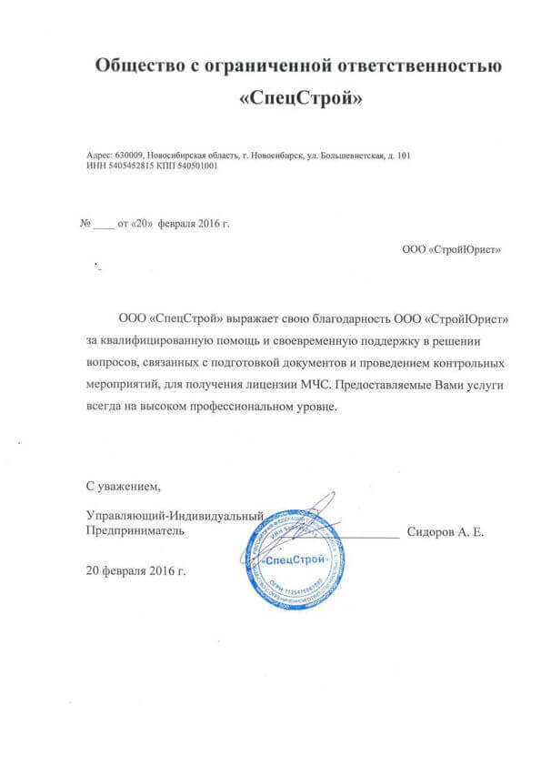 Отзывы клиентов "СтройЮрист" по лицензированию МЧС в Астрахани