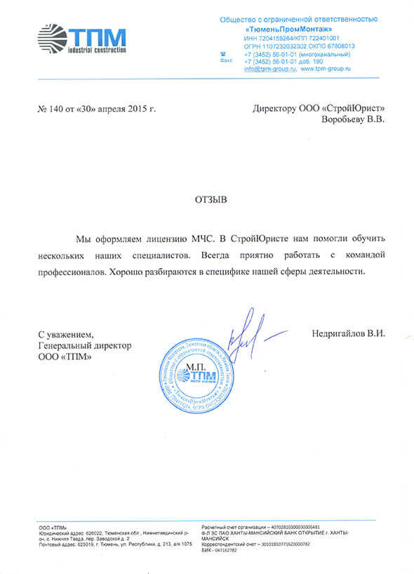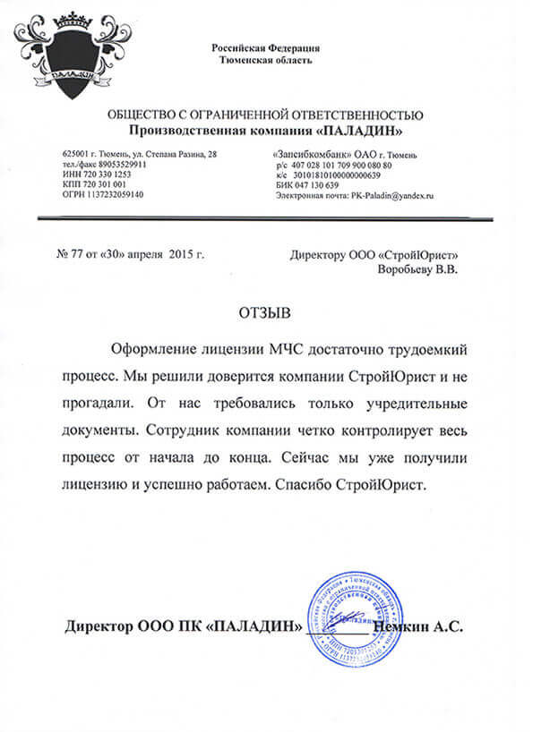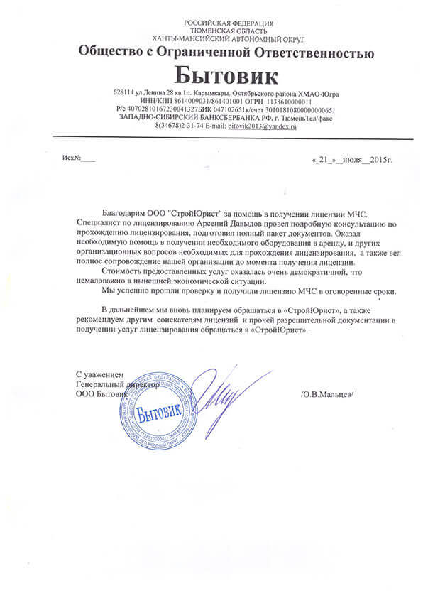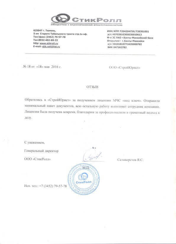 Отзывы клиентов "СтройЮрист" по лицензированию МЧС в Астрахани