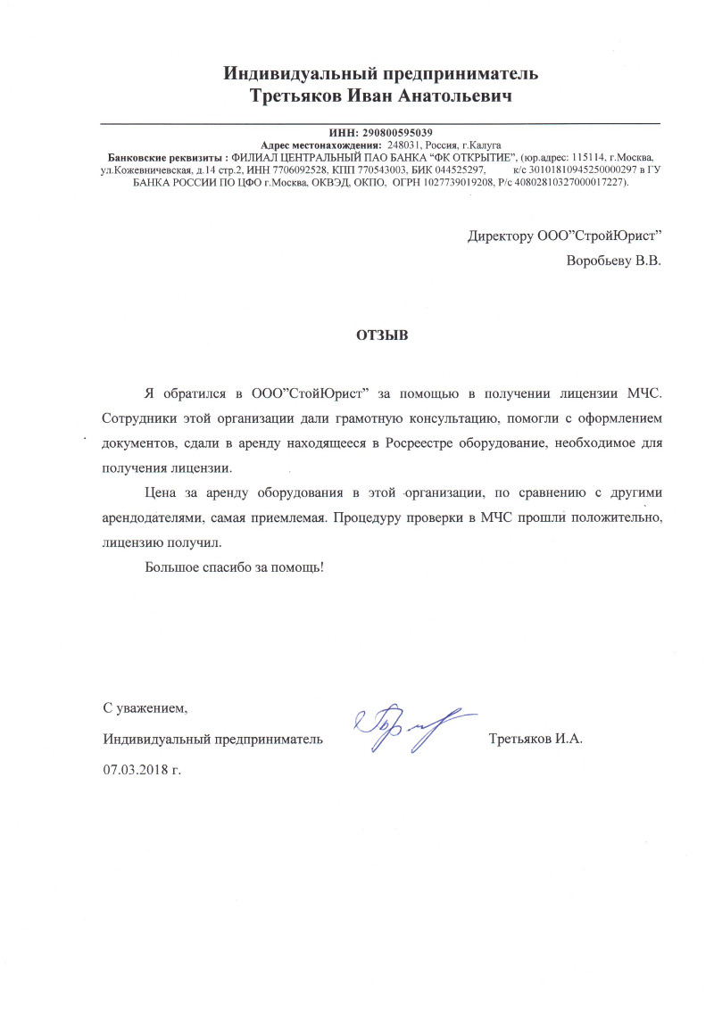 Отзывы клиентов "СтройЮрист" по лицензированию МЧС в Астрахани