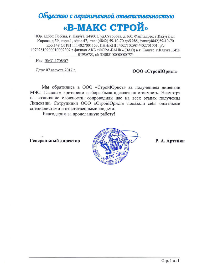 Отзывы клиентов "СтройЮрист" по лицензированию МЧС в Астрахани
