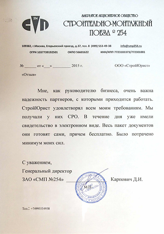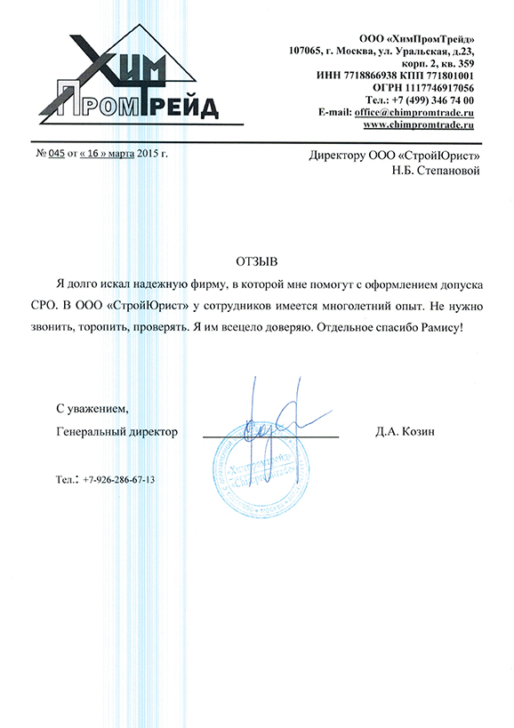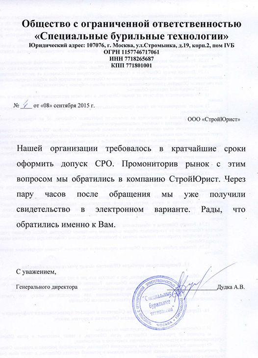 Отзывы клиентов "СтройЮрист" по вступлению в СРО в Астрахани