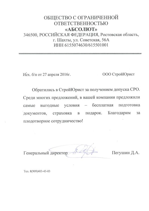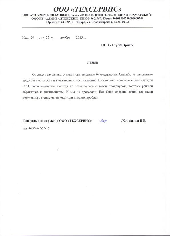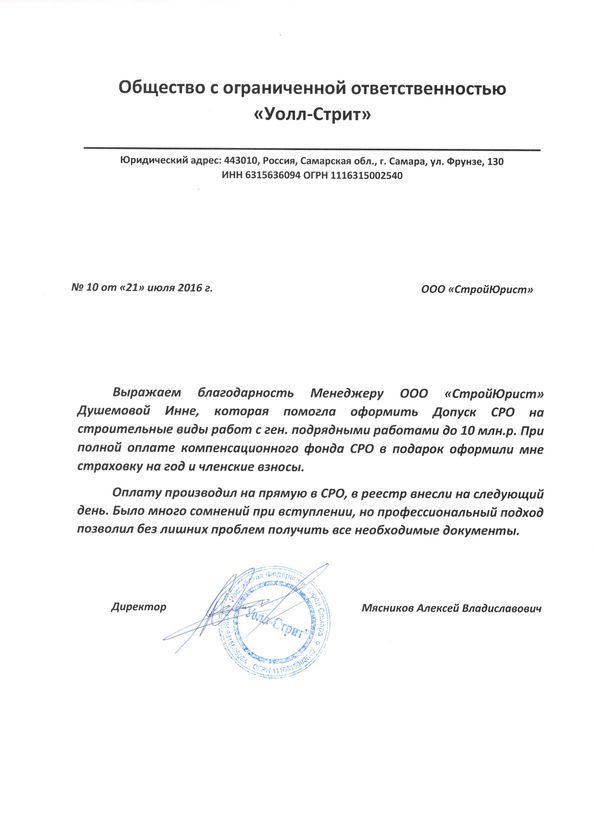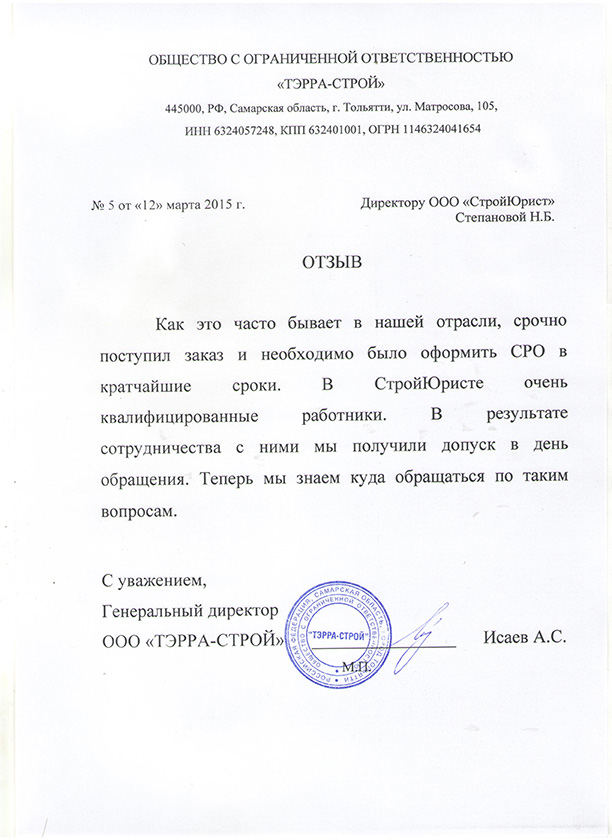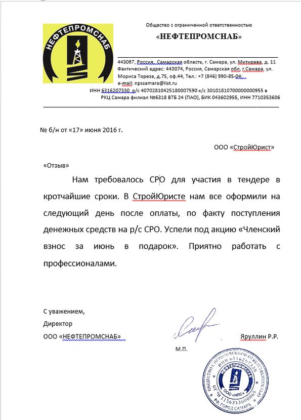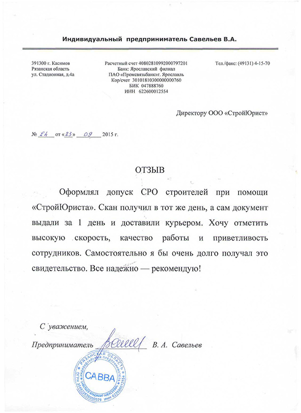 Отзывы клиентов "СтройЮрист" по вступлению в СРО в Астрахани
