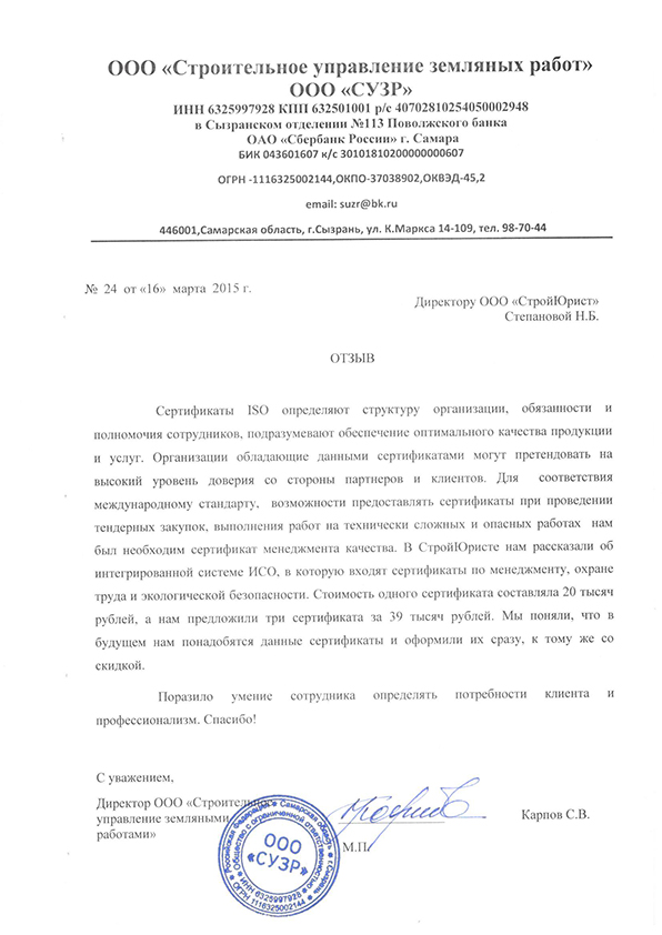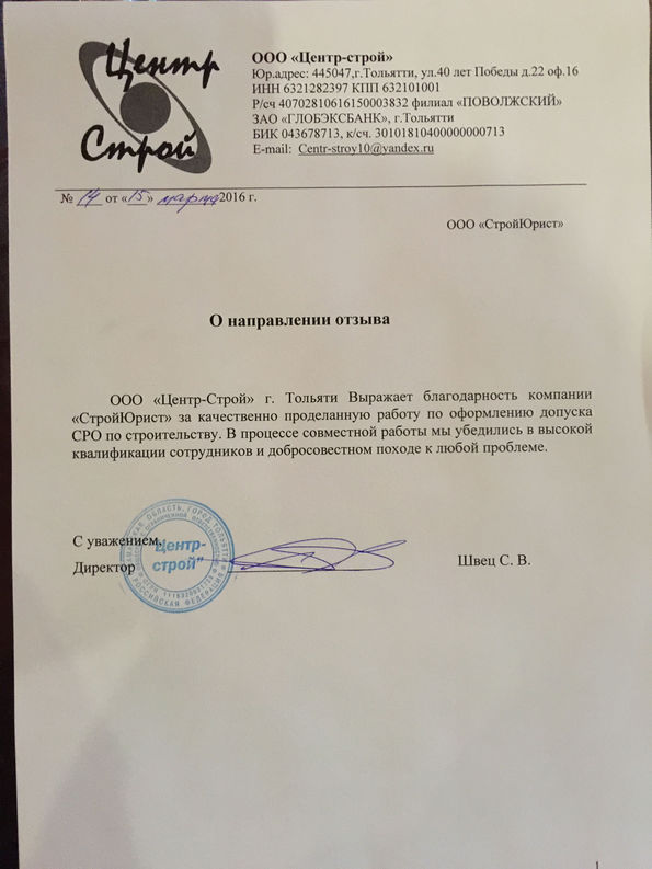 Отзывы клиентов "СтройЮрист" по вступлению в СРО в Астрахани