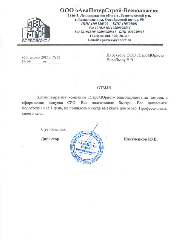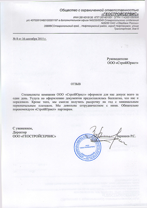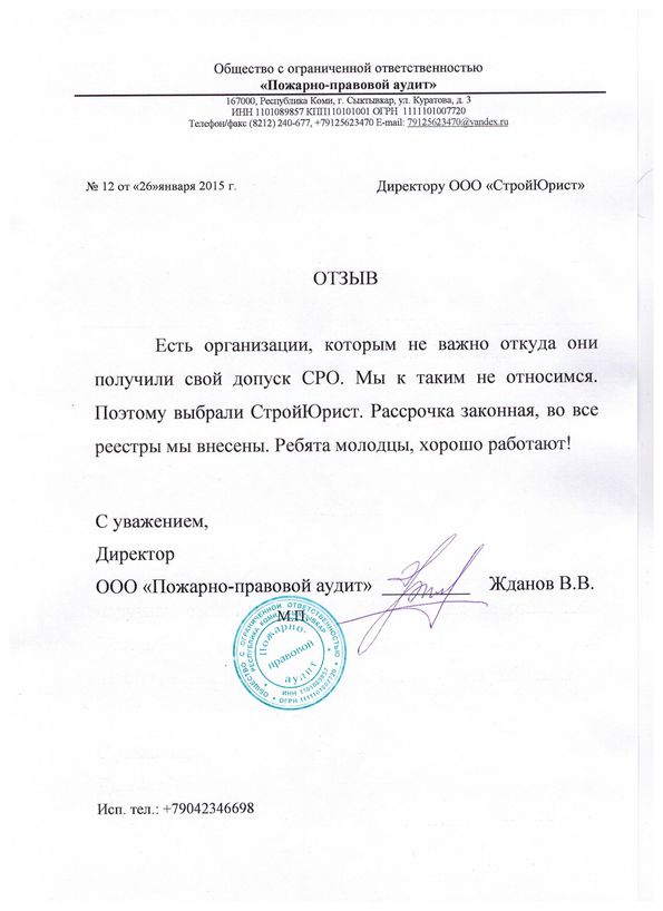 Отзывы клиентов "СтройЮрист" по вступлению в СРО в Астрахани