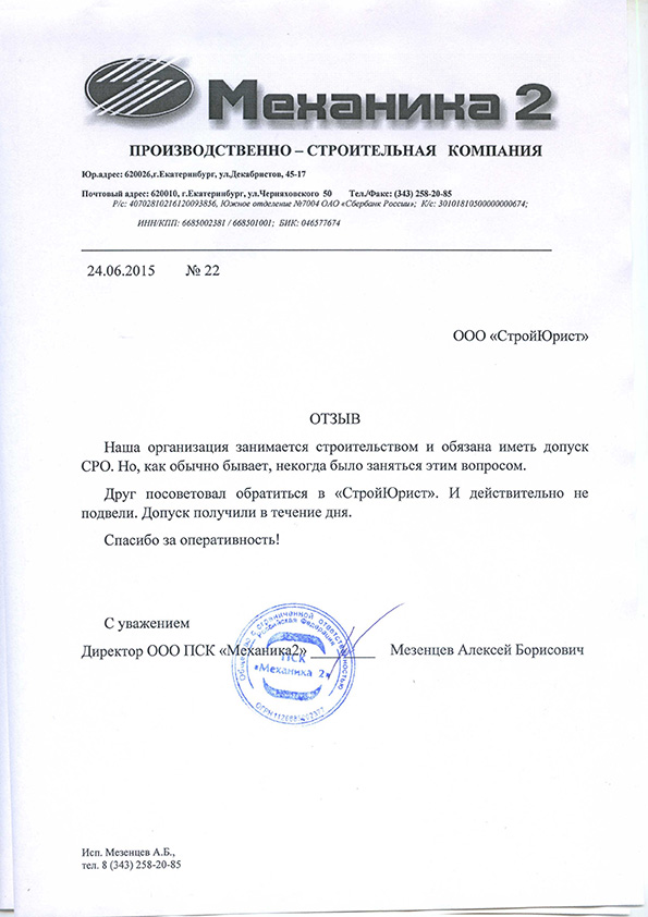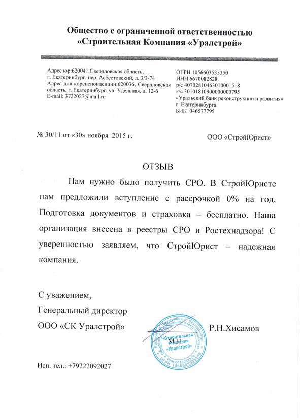 Отзывы клиентов "СтройЮрист" по вступлению в СРО в Астрахани