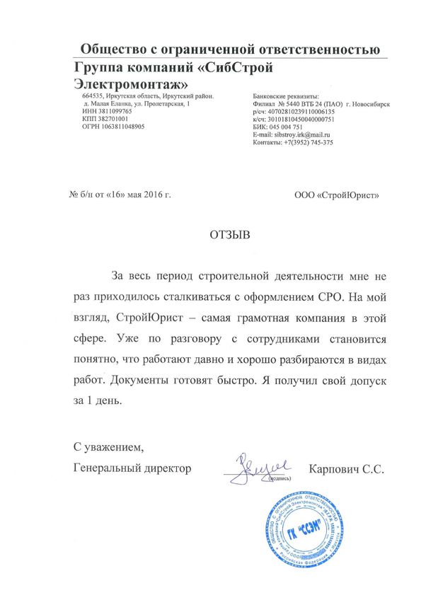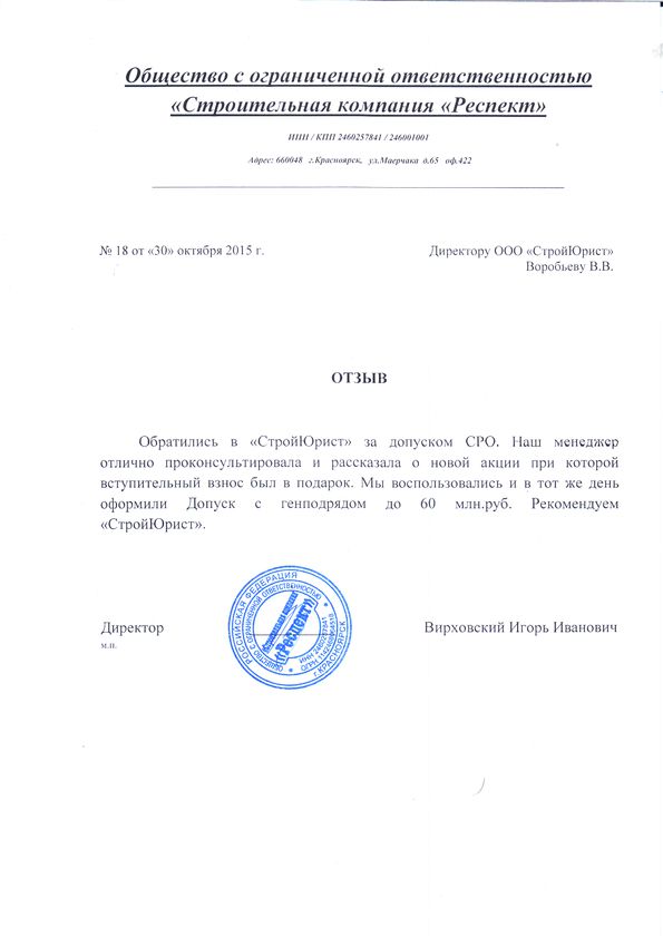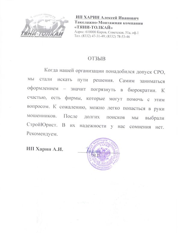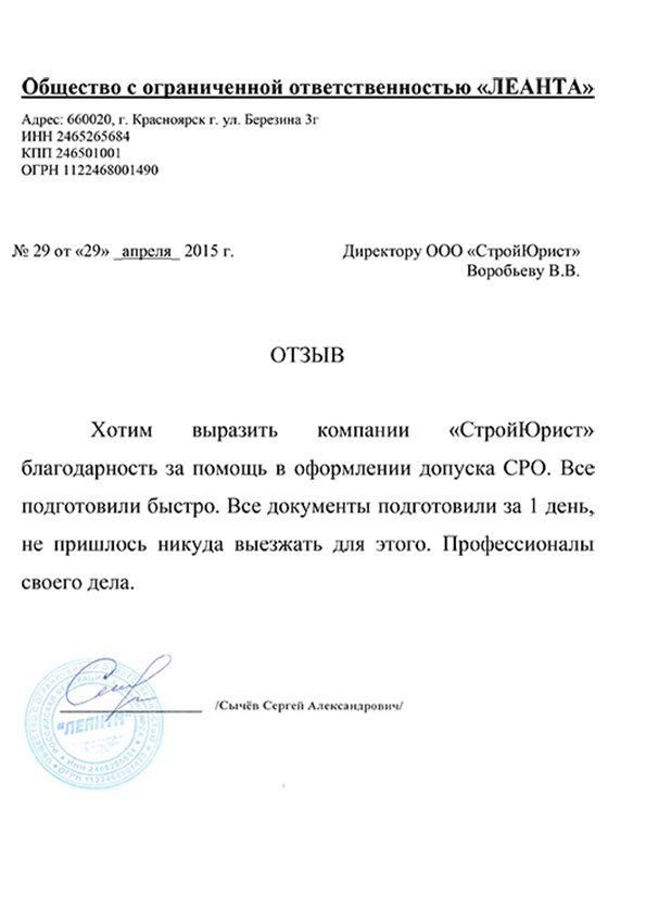 Отзывы клиентов "СтройЮрист" по вступлению в СРО в Астрахани