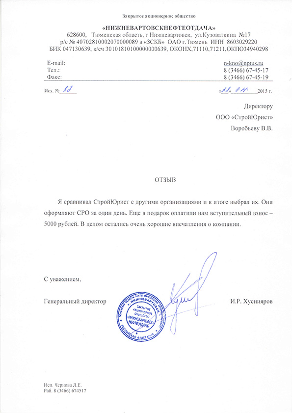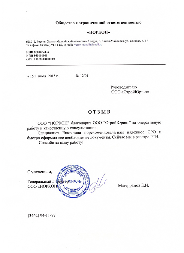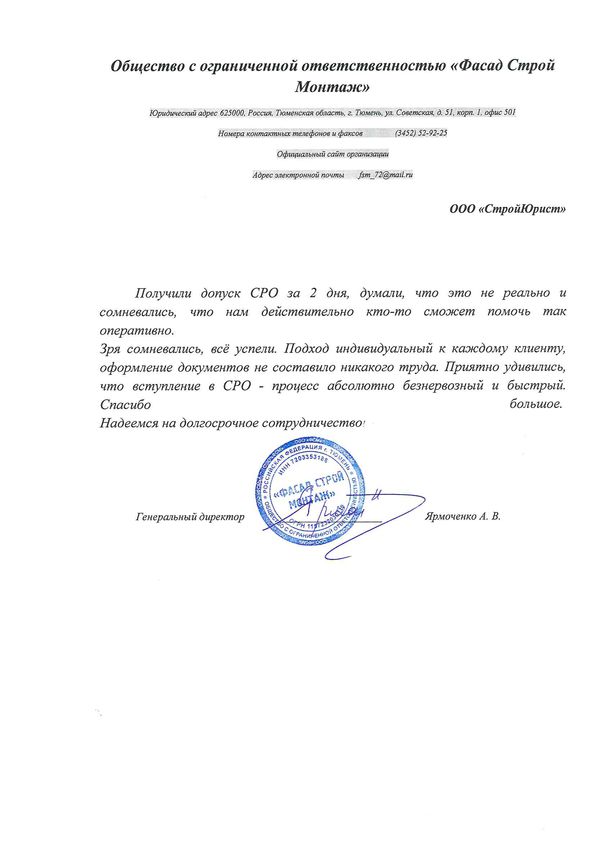 Отзывы клиентов "СтройЮрист" по вступлению в СРО в Астрахани