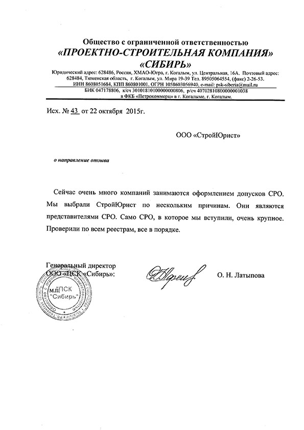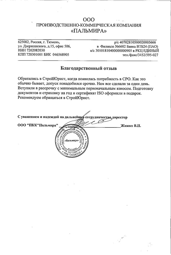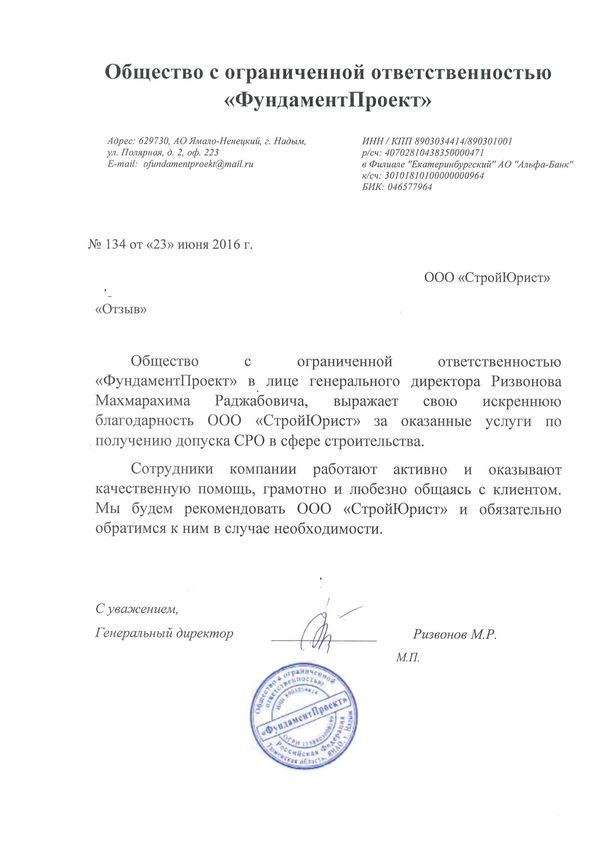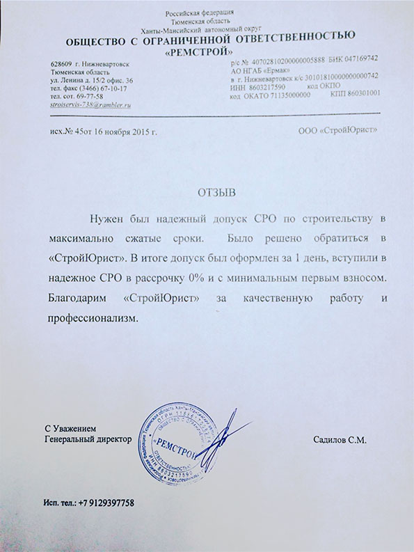 Отзывы клиентов "СтройЮрист" по вступлению в СРО в Астрахани