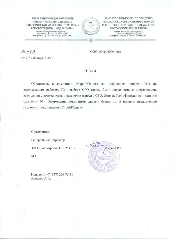 Отзывы клиентов "СтройЮрист" по вступлению в СРО в Астрахани