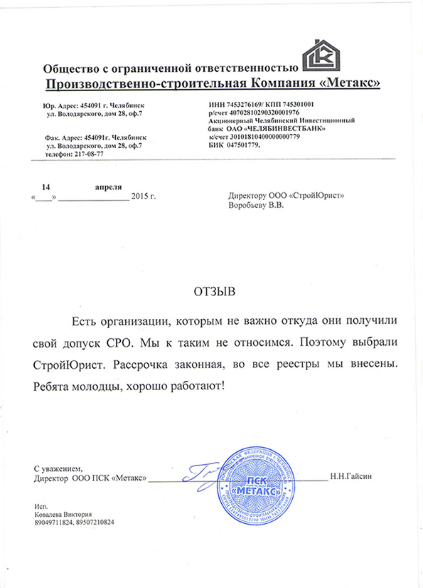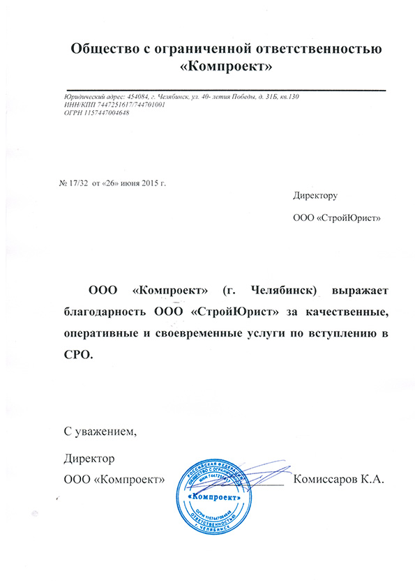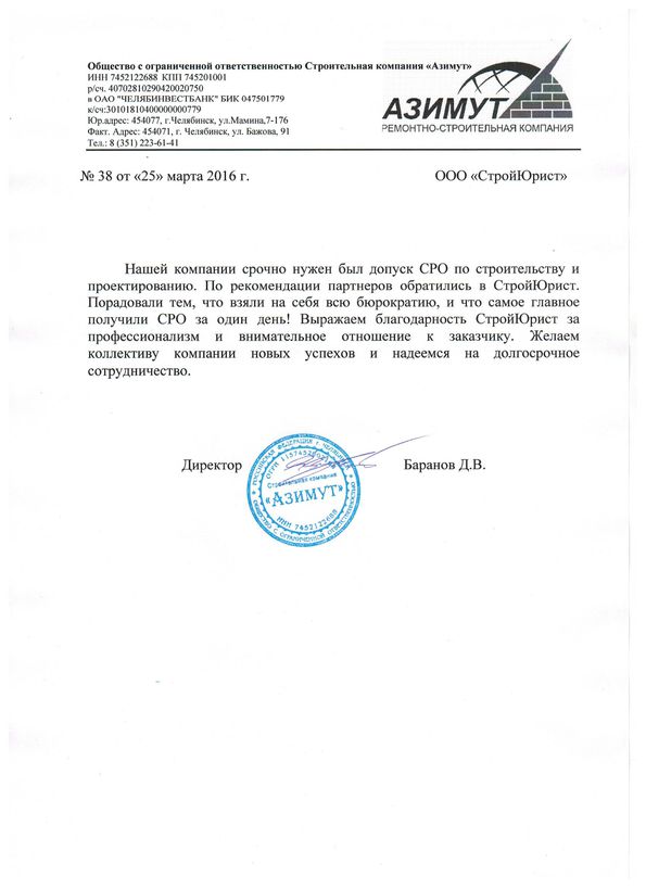 Отзывы клиентов "СтройЮрист" по вступлению в СРО в Астрахани